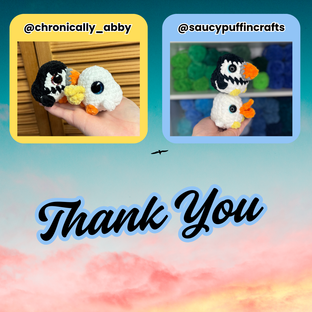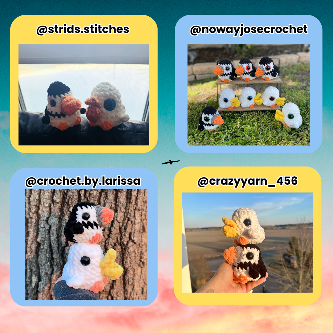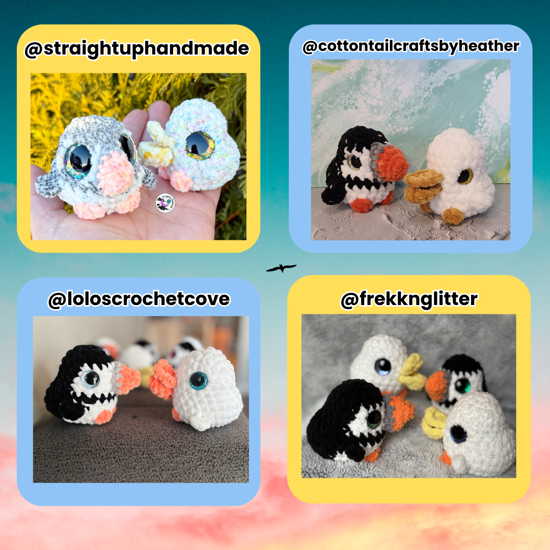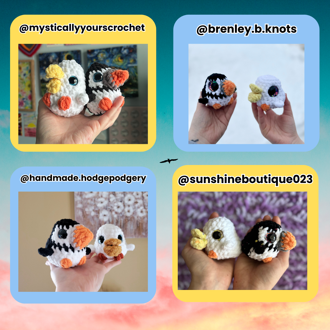 This is a Digital PDF Crochet Pattern that includes steps on how to make Scoops the baby Pelican (no sew), and Jiggs the baby Puffin (low sew)! You can sell the items you make from this pattern, but you must credit me for the pattern! :) This pattern is written in US terminology, and in English.